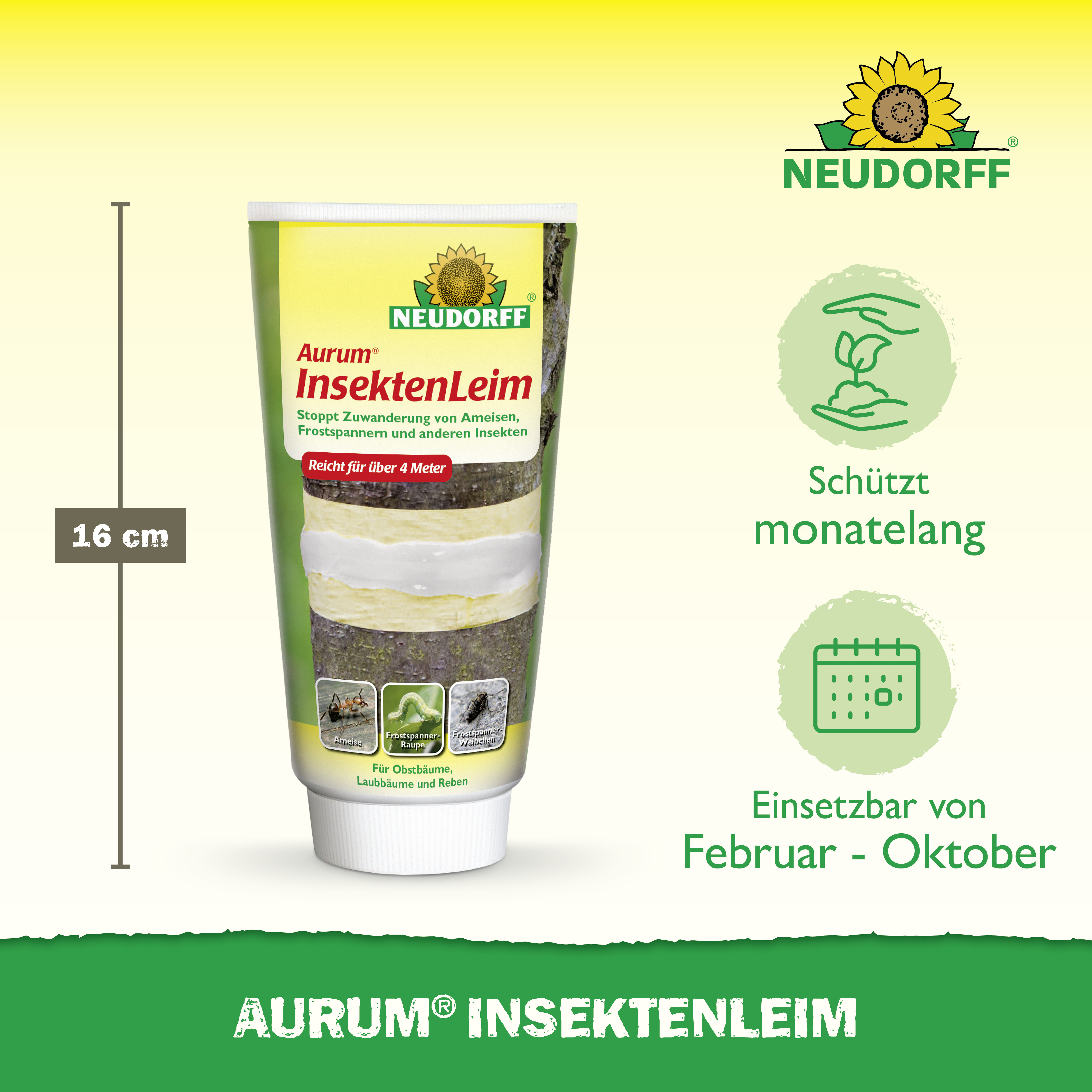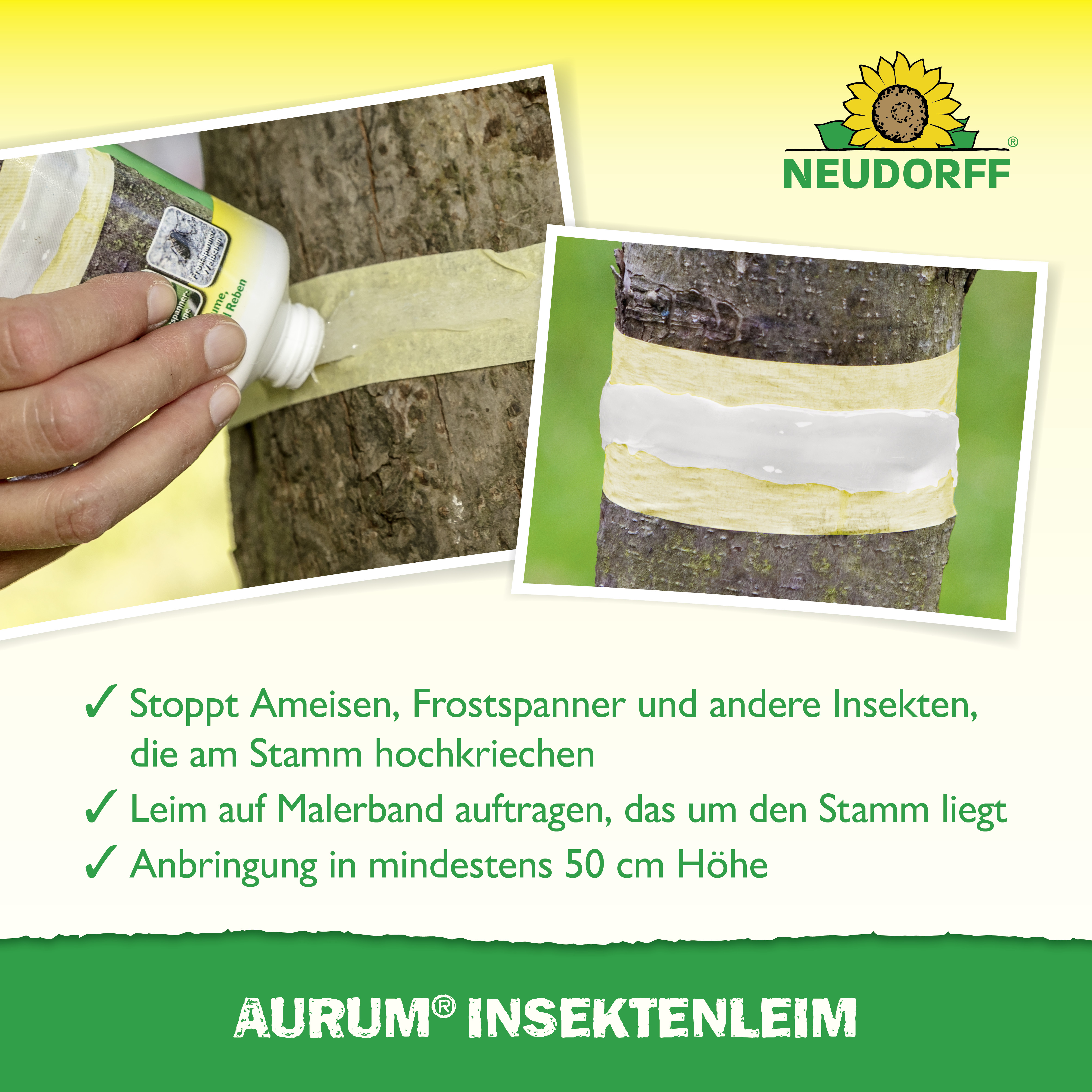 Im Frühjahr und Sommer gegen Ameisen und andere kriechende Insekten. Im Herbst gegen Frostspannerraupen. Die Leimbarriere nicht direkt auf die Rinde, sondern auf einen 3cm breiten Streifen aus farbigen Klebeband (Malerband) streichen.