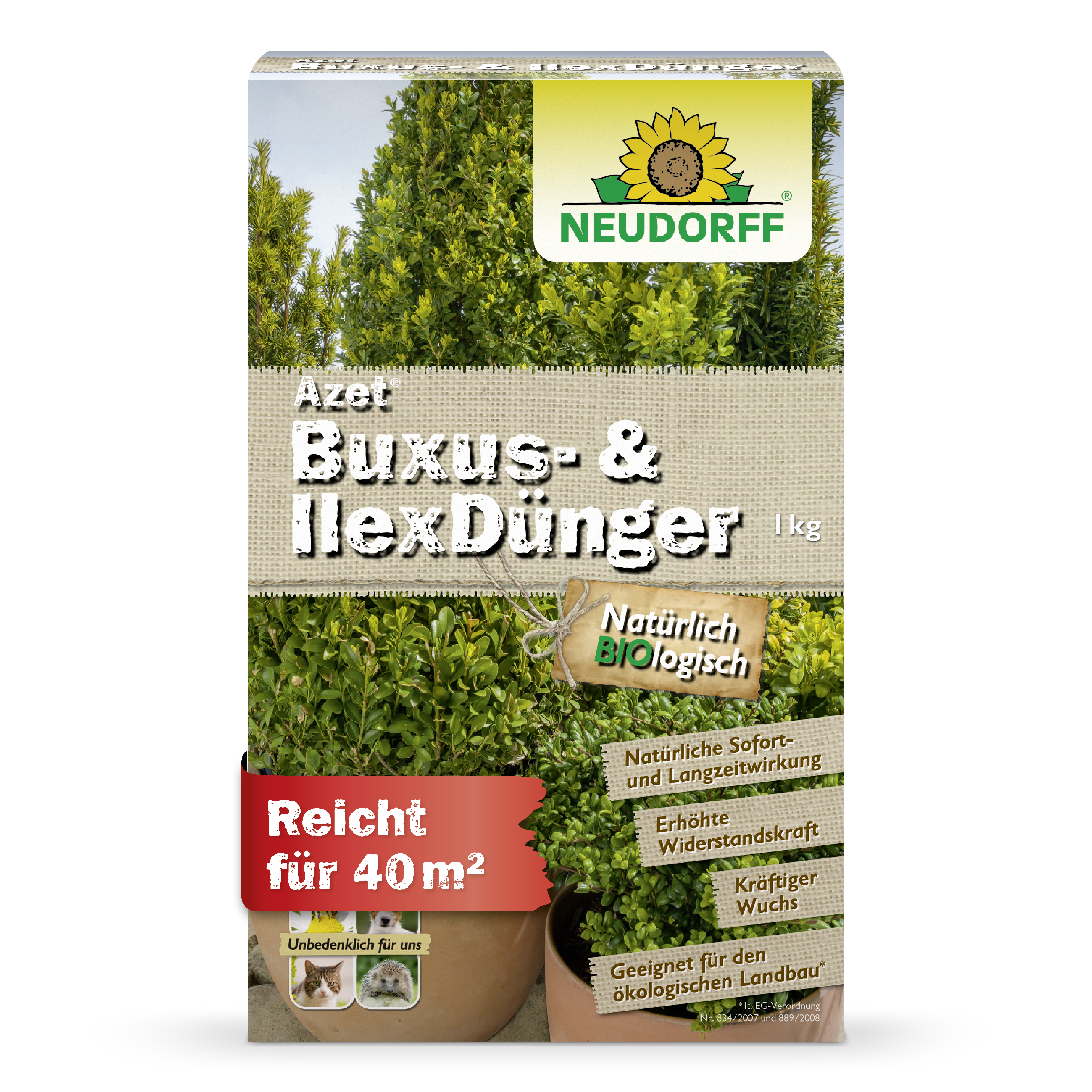 Buchsbäume und Ilexe wachsen langsam und brauchen Jahre, bis sie zu einer stattlichen Kugel oder Pyramide herangezogen und ein immergrünes Stilelement im Garten darstellen. Versorgen Sie deshalb Ihre grünen Lieblinge regelmäßig mit diesem organischen Dünger.