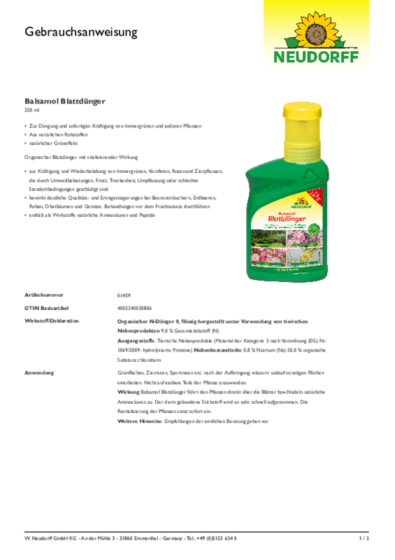 Balsamol Blattdünger führt den Pflanzen direkt über die Blätter bzw.