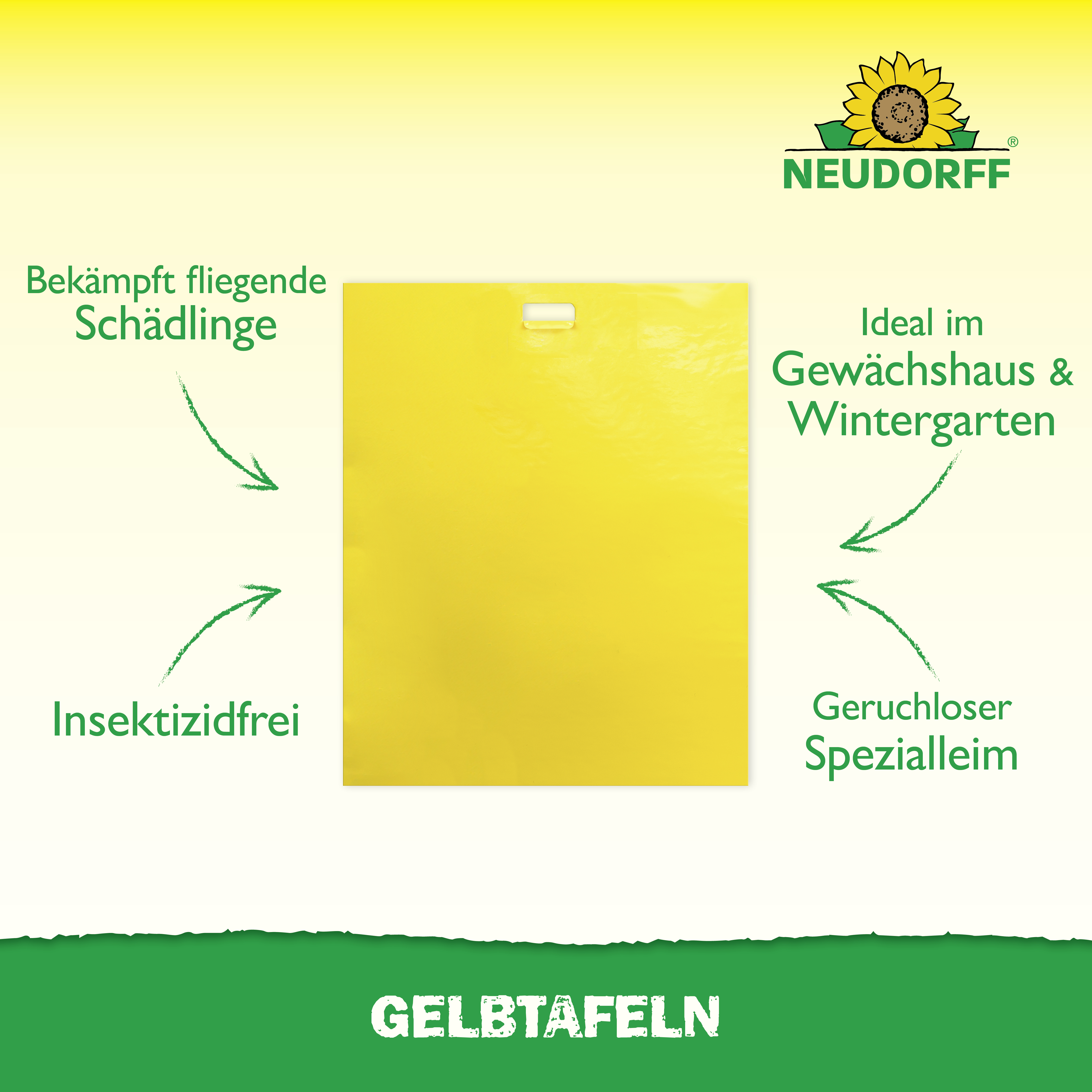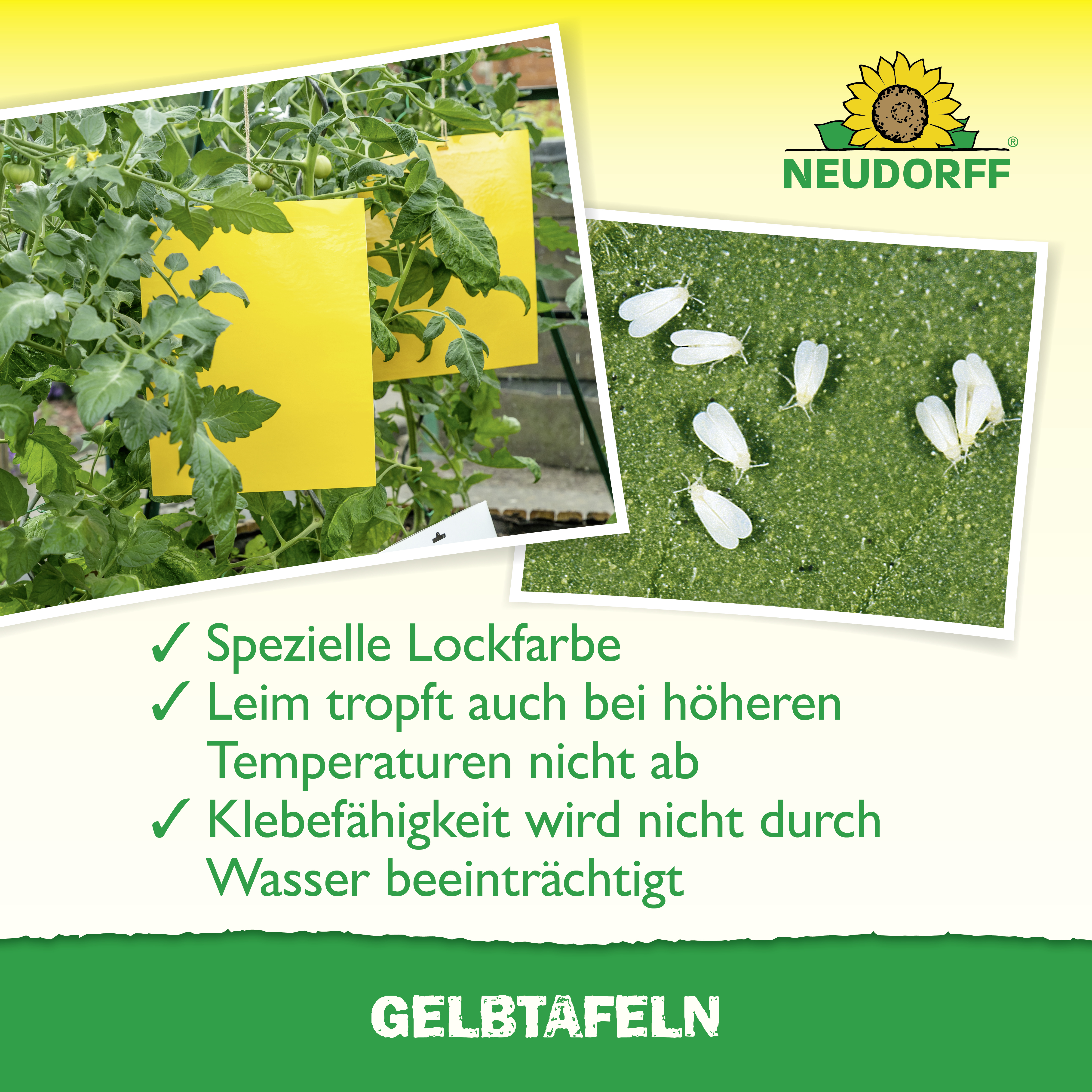 empfehlen wir unsere kleinformatigen Gelbtafeln. Hängen Sie die Gelbtafeln gleichmäßig