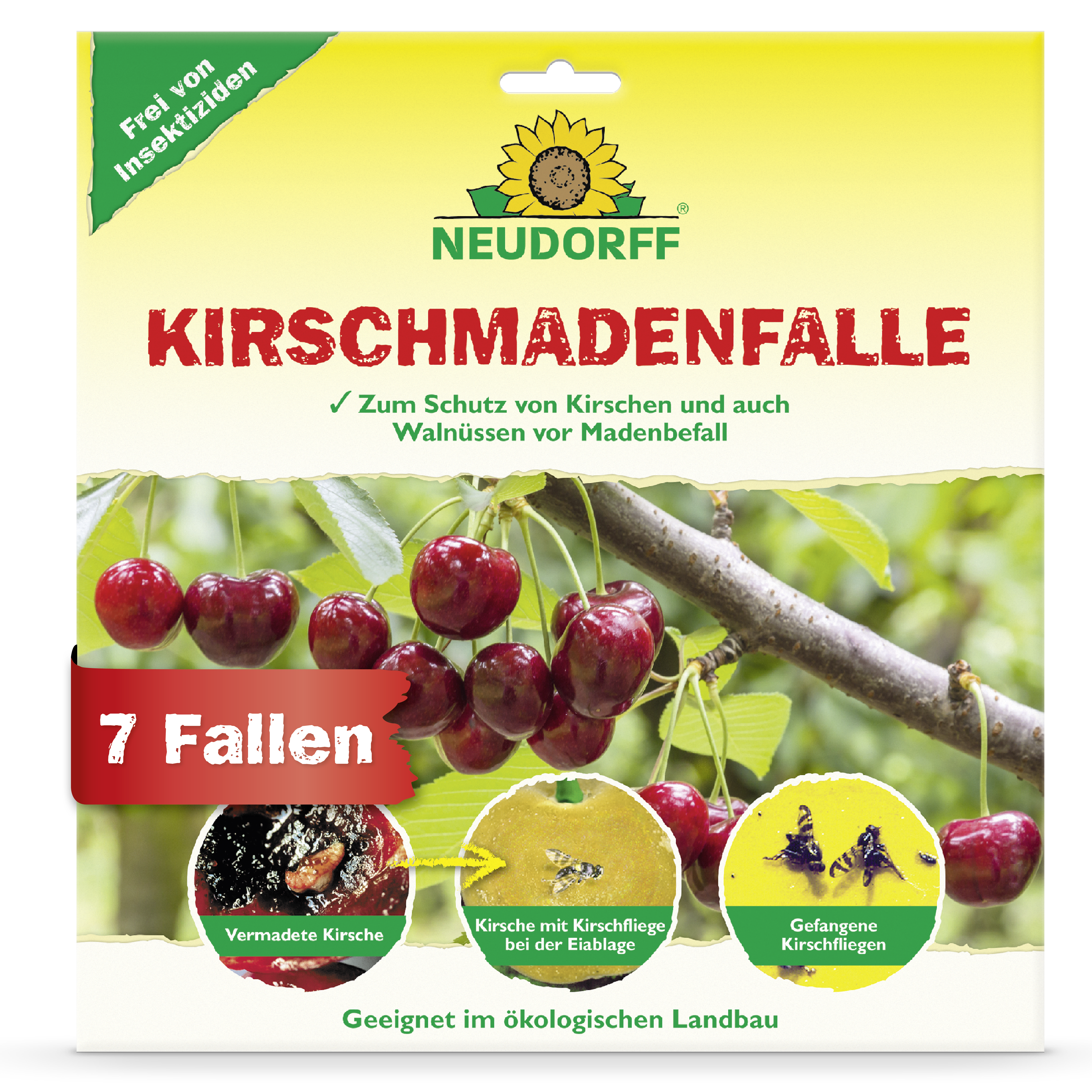 Hängen Sie die Fallen bei beginnender Gelbfärbung der Kirschen auf. Dies tun sie je nach Höhenlage und Kirschsorte Mitte Mai bis Mitte Juli.Produktmerkmale