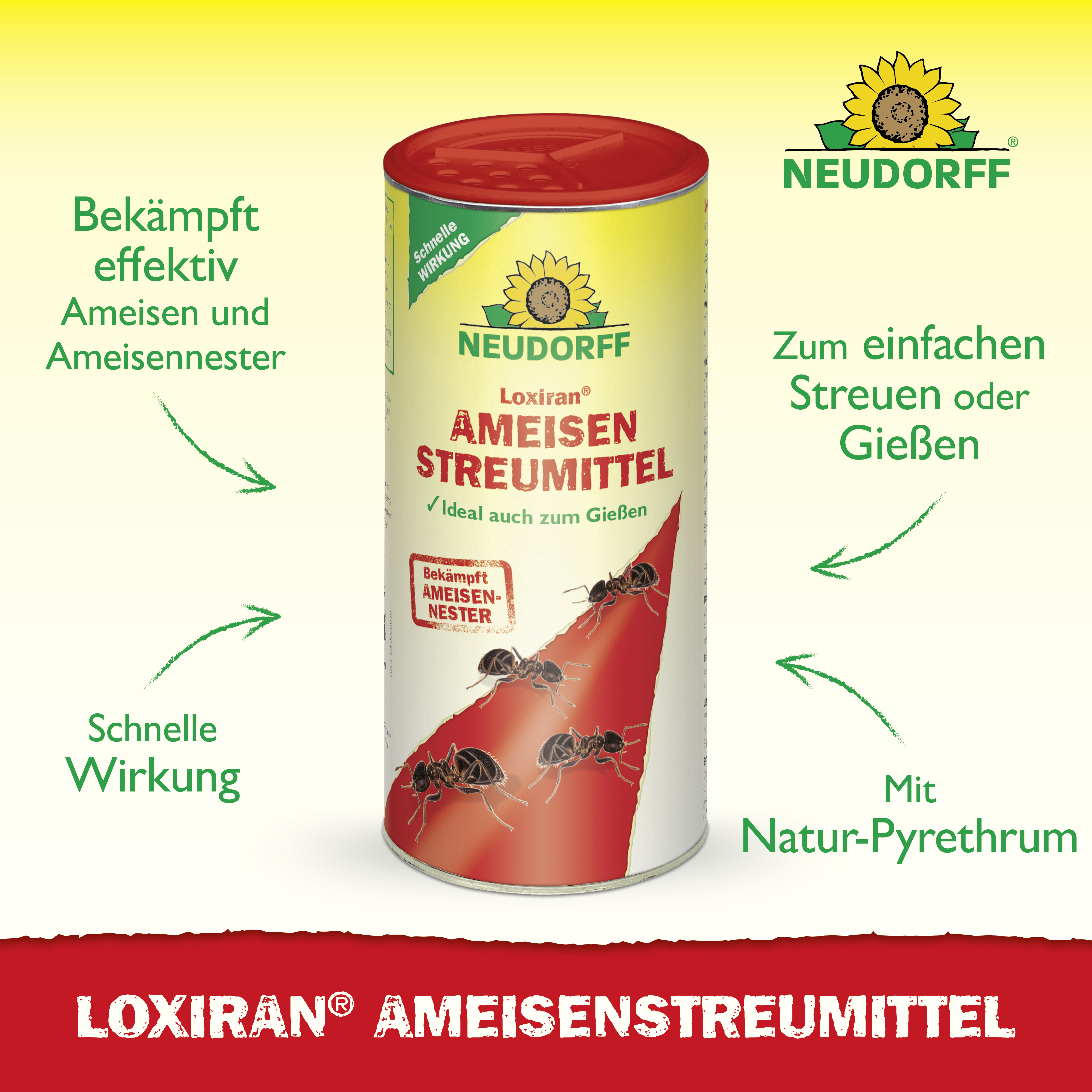 - Streu- und Gießmittel zur sicheren und schnellen Ameisenbekämpfung rund um das Haus