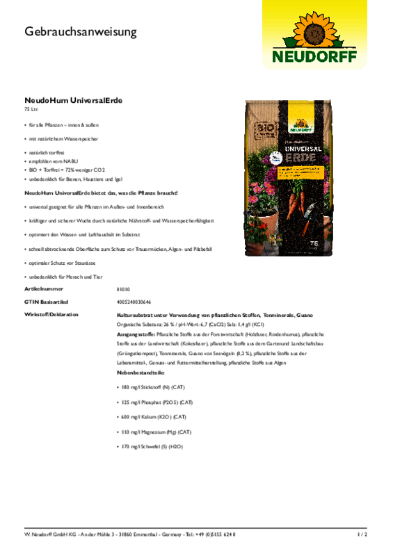 4005240030646 GA NeudoHum UniversalErde 75Ltr