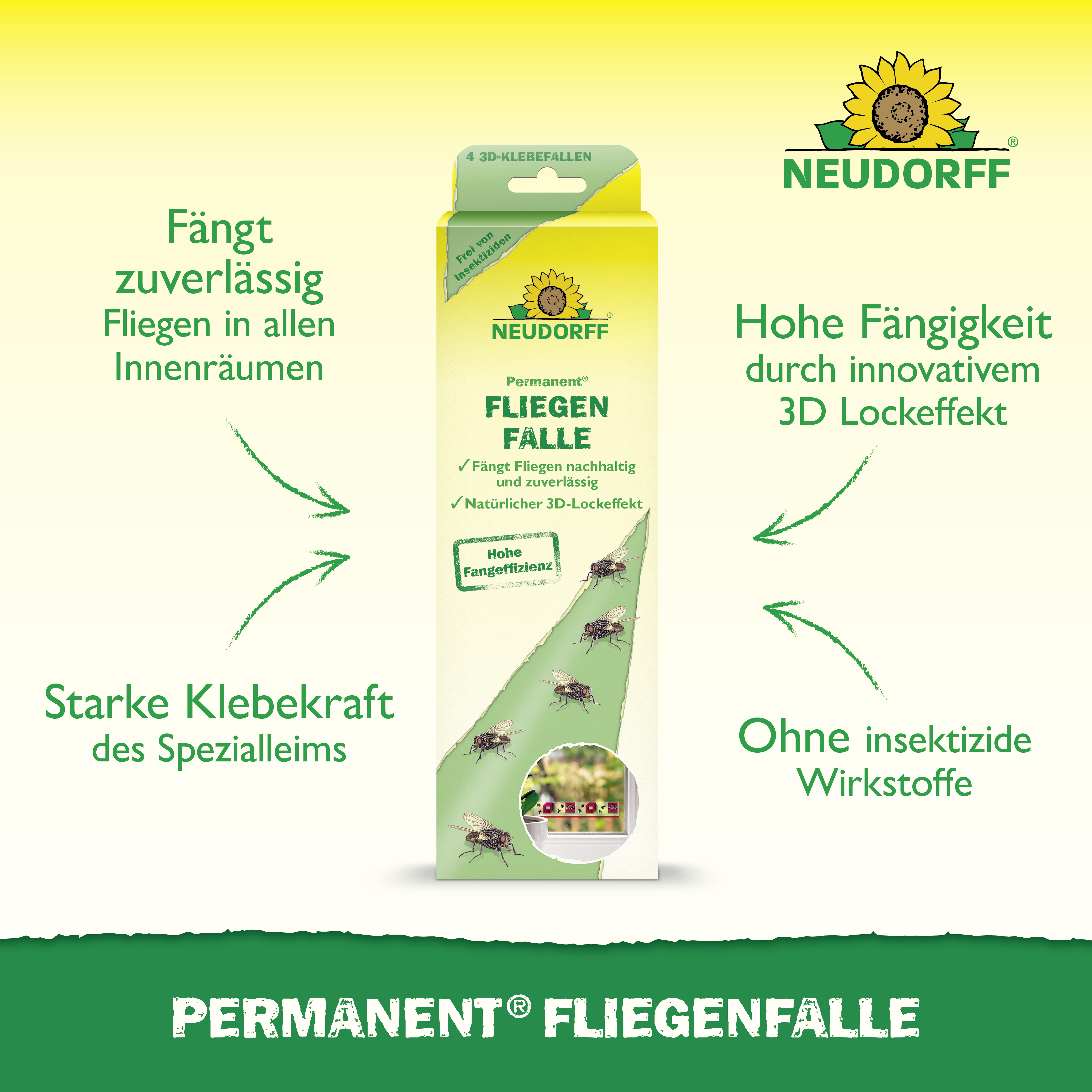 Fliegenfreie Räume mit 3D-Design und Fluoreszensfarben – vollkommen insektizidfrei.