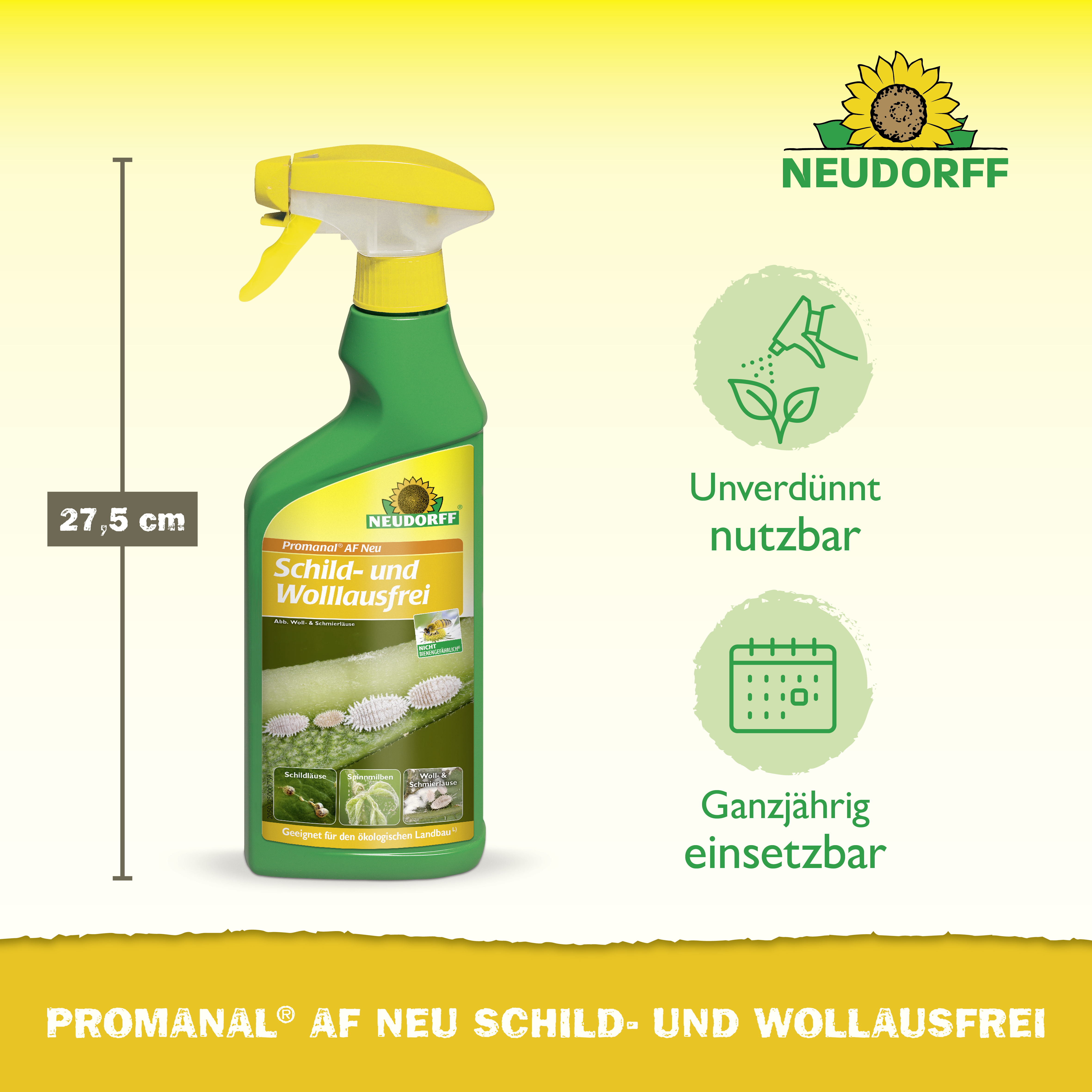 Promanal AF Neu Schild- und Wolllausfrei*,° ohne weitere Verdünnung direkt auf die befallenen Pflanzen sprühen.