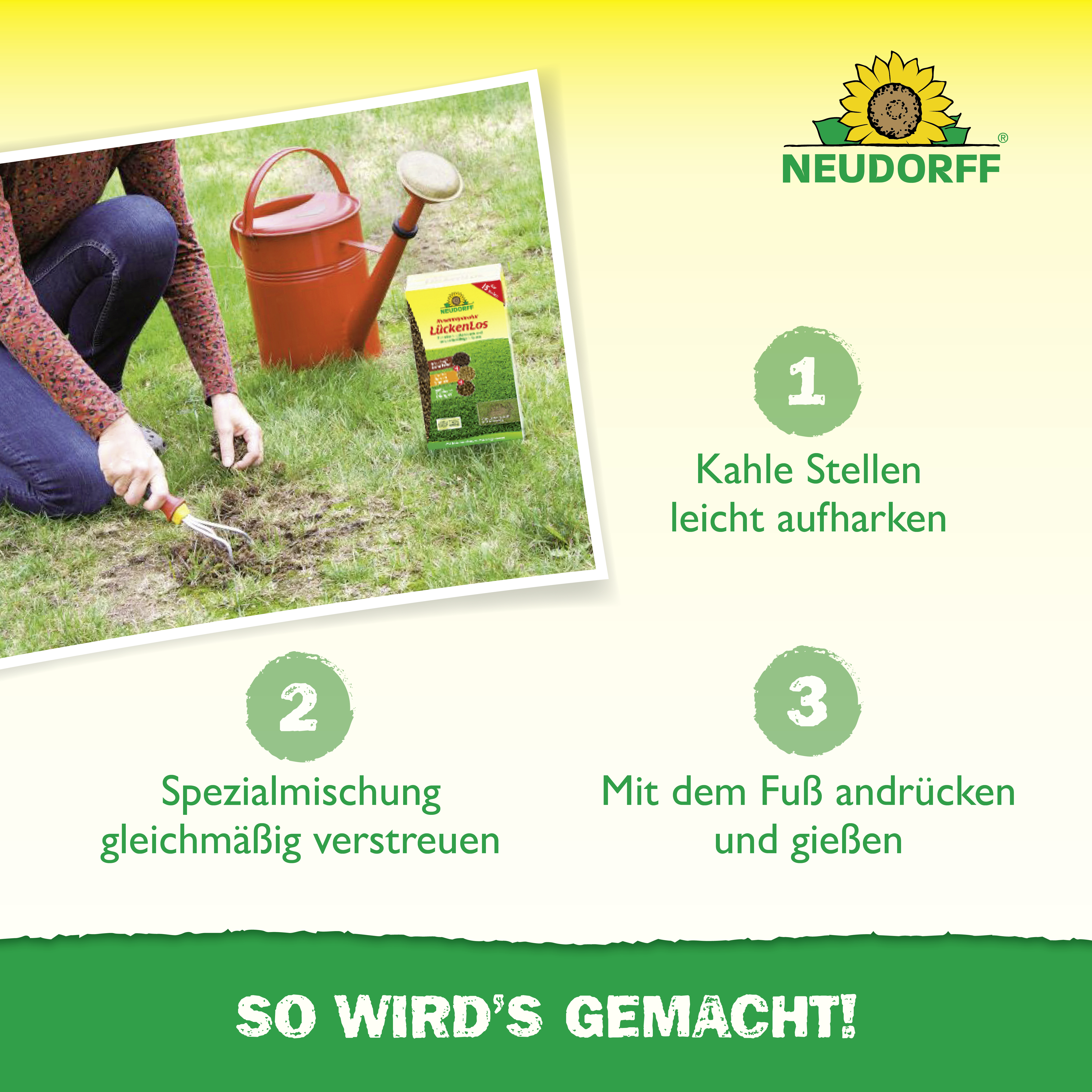 - anwendungsfertige Spezialmischung mit Rasensamen, Neudorff Terra Preta und 100% organischem Dünger