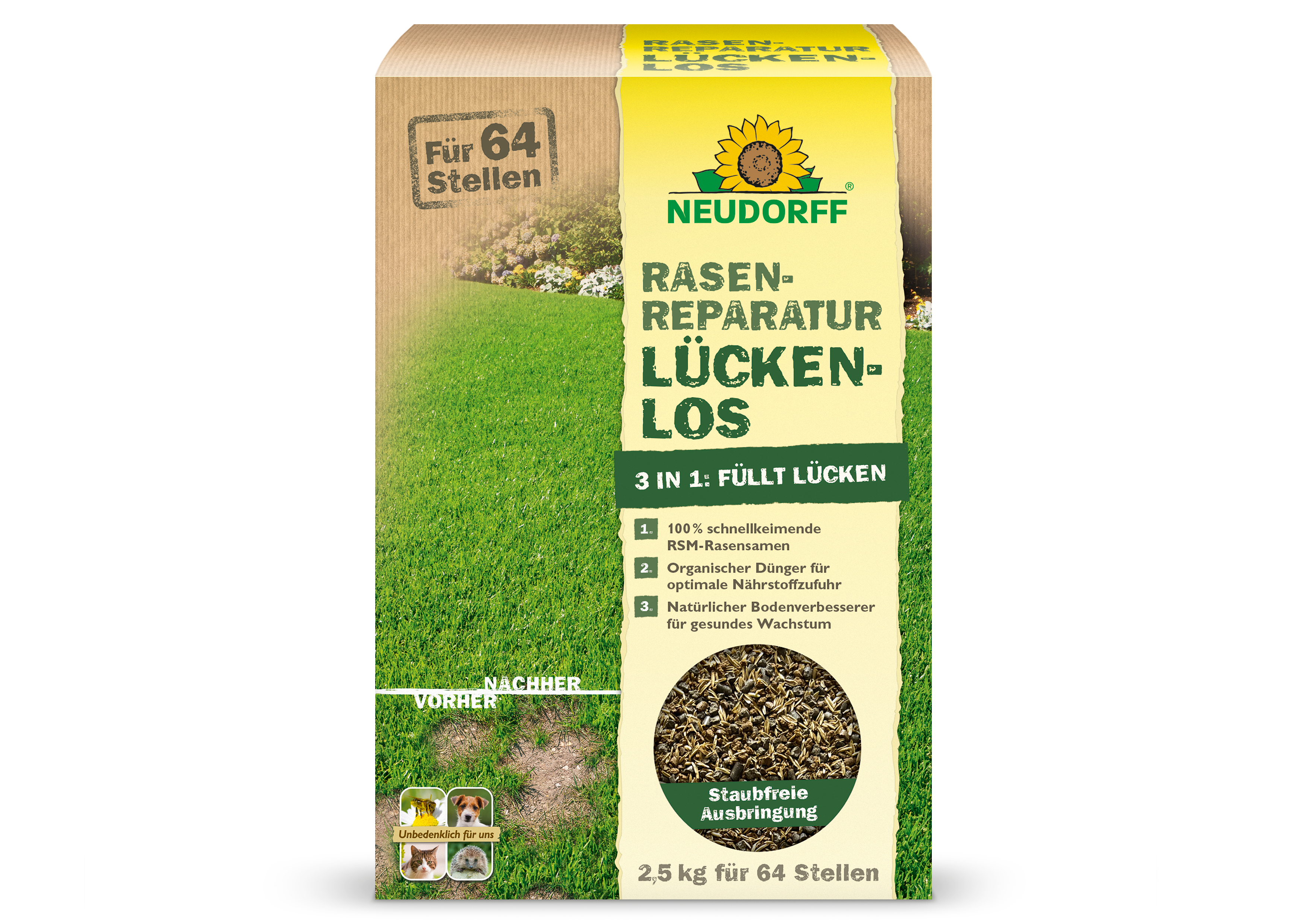 - speziell zum Ausbessern kleinerer kahler Stellen im Rasen geeignet