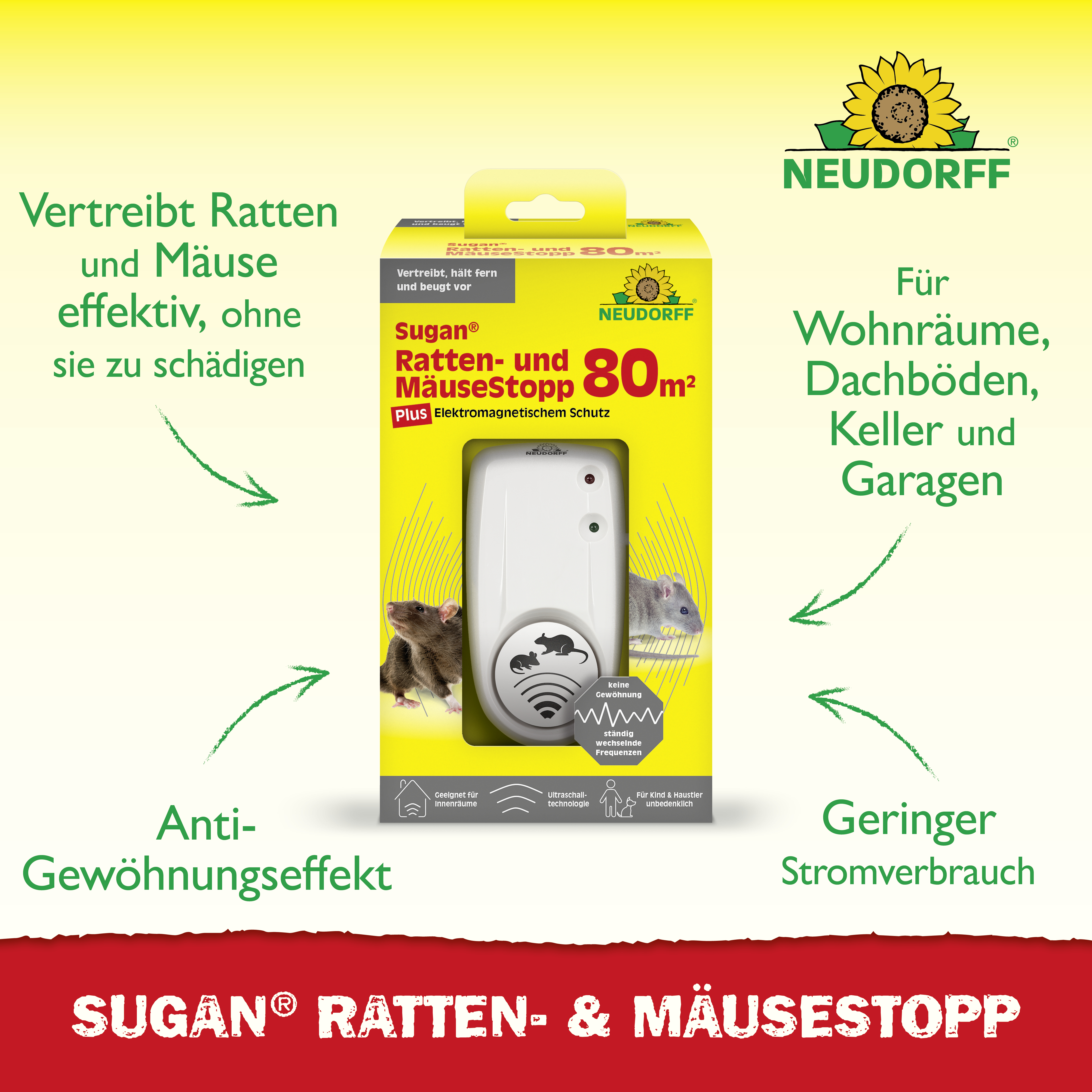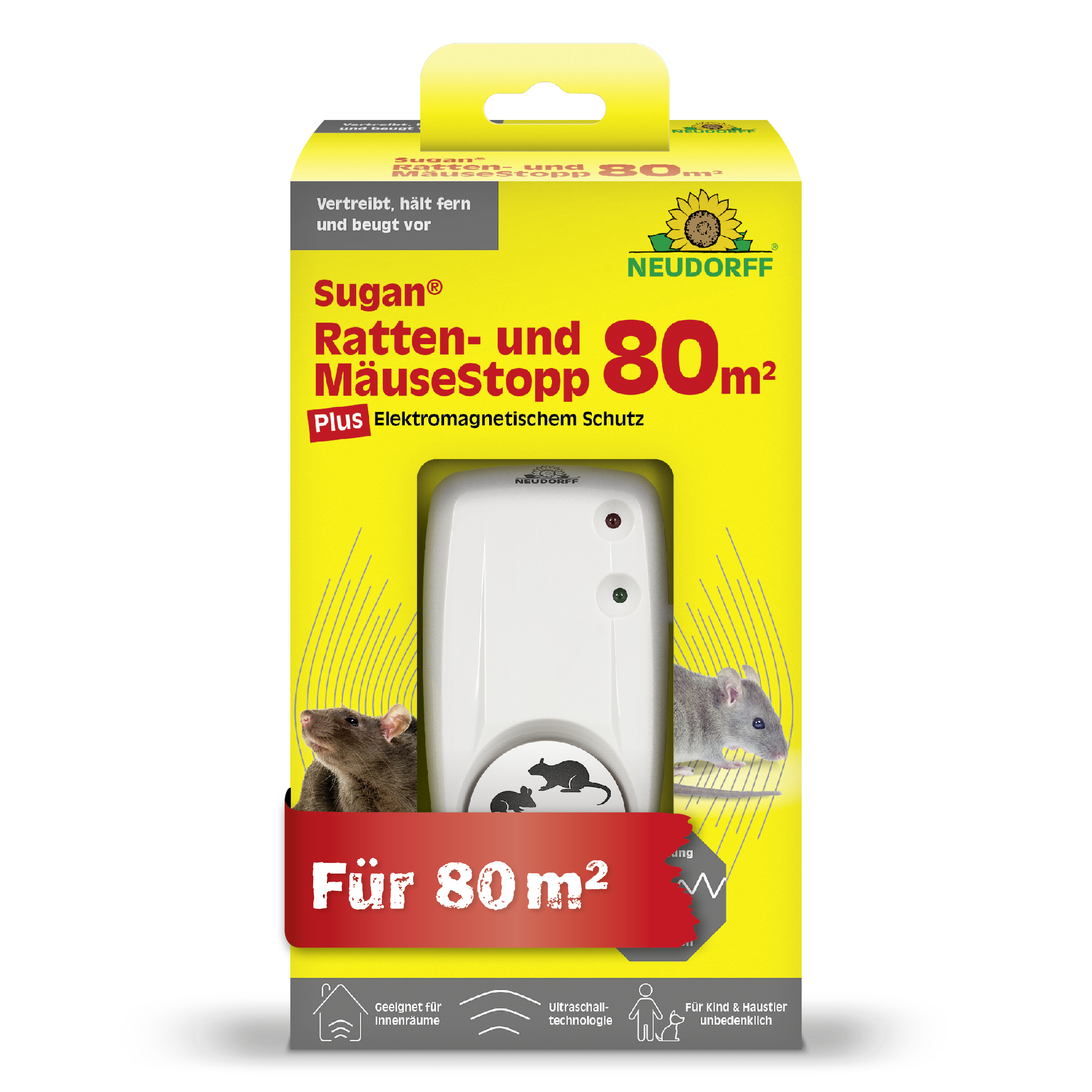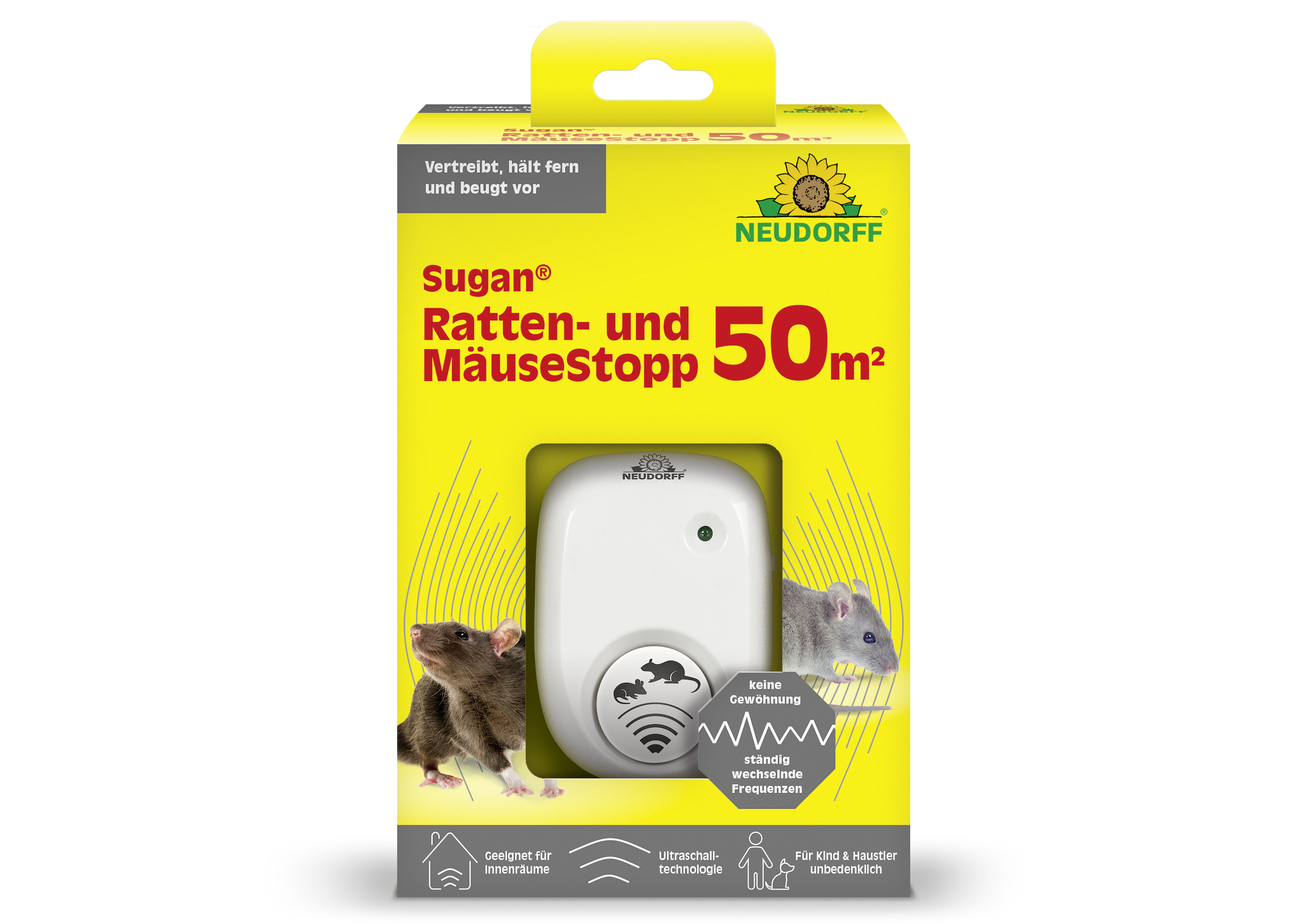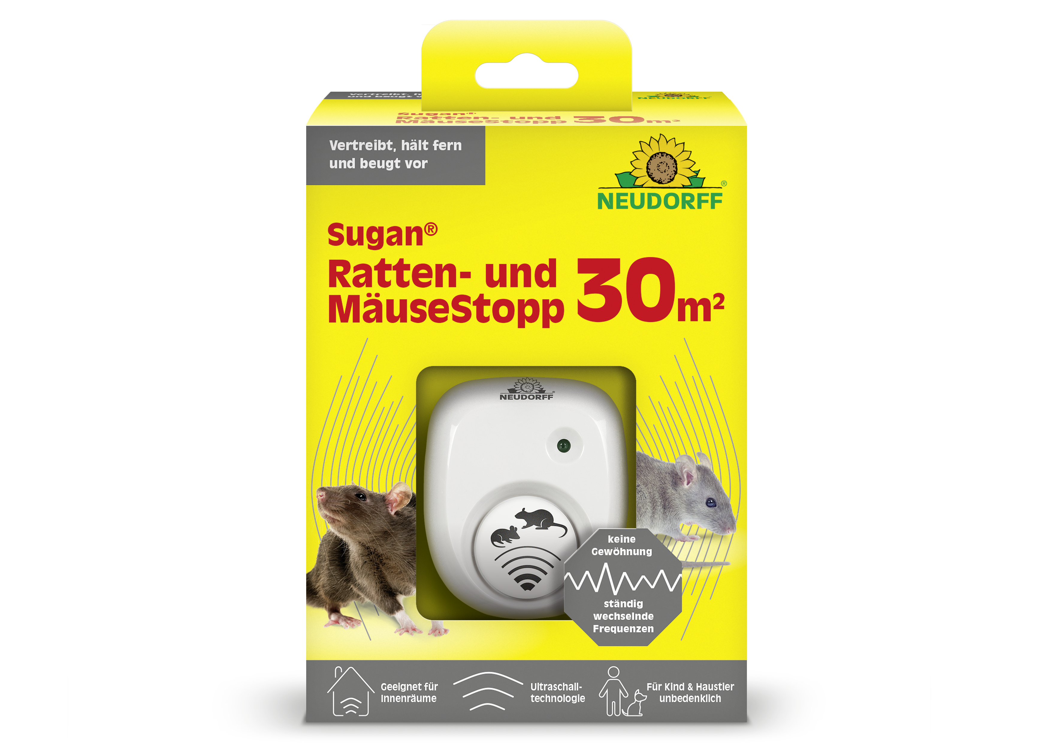 - vertreibt Ratten und Mäuse aus Wohnräumen, Dachböden, Kellern und Garagen