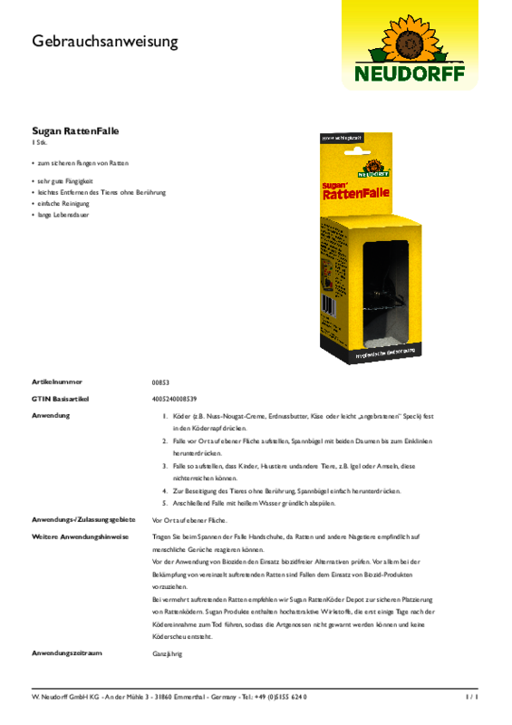 - wiederverwendbare mechanische Falle für individuelle, giftfreie Beköderung